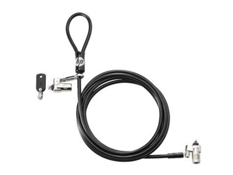 Zablokuj swój notebook lub tablet w biurze i miejscach publicznych o dużym natężeniu ruchu, mocując go za pomocą blokady kablowej HP Nano z kluczem, o cienkim profilu.