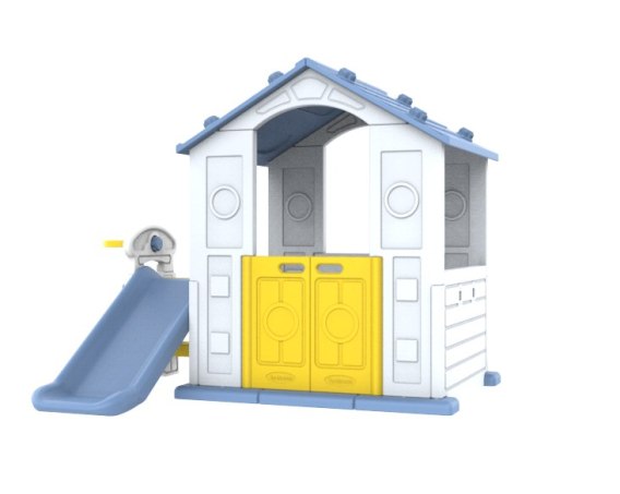 Domek Ogrodowy 3w1 dla dzieci Niebieski Dach + Zjeżdżalnia + Koszykówka