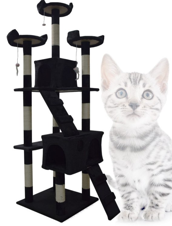 Drapak/Drzewko dla kota Czarny 170cm Domek z Legowiskiem i słupkami z sizalu