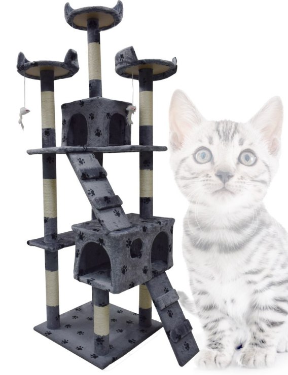 Ten duży drapak dla kota to idealne rozwiązanie zarówno dla Twojego pupila, jak i dla Ciebie. Zaprojektowany z myślą o trwałości i wytrzymałości, ten drapak został wykonany z solidnych materiałów o wysokiej jakości. Słupek wykonany ze splotu sizalowego zapewnia kotu doskonałą powierzchnię do ostrzenia pazurków, jednocześnie nie niszcząc mebli w domu. Bezpieczne drewniane podłogi oraz konstrukcja sprawiają, że drapak jest stabilny nawet podczas intensywnych zabaw.