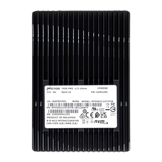 Dysk SSD Micron 7450 PRO 15.36TB U.3 (15mm) NVMe Gen4 MTFDKCC15T3TFR-1BC1ZABYYR (DWPD 1)