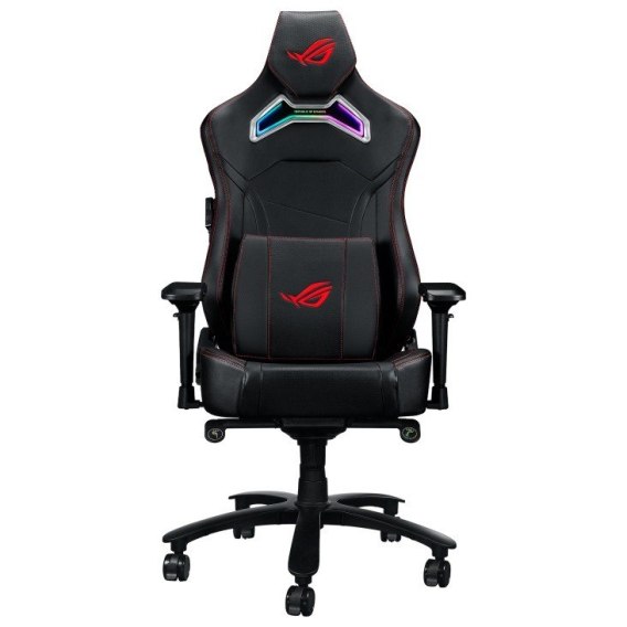 Fotel gamingowy ROG Chariot X w stylu samochodu wyścigowego, wyposażony w regulowany zagłówek z pianki o dużej gęstości, podparcie lędźwiowe z pianki zapamiętującej kształt, podłokietniki 4D, mechanizm przechylania, trwały podnośnik gazowy klasy 4 i trwałą, wysokiej jakości skórę PU, zapewniającą najwyższej jakości wrażenia z gry.