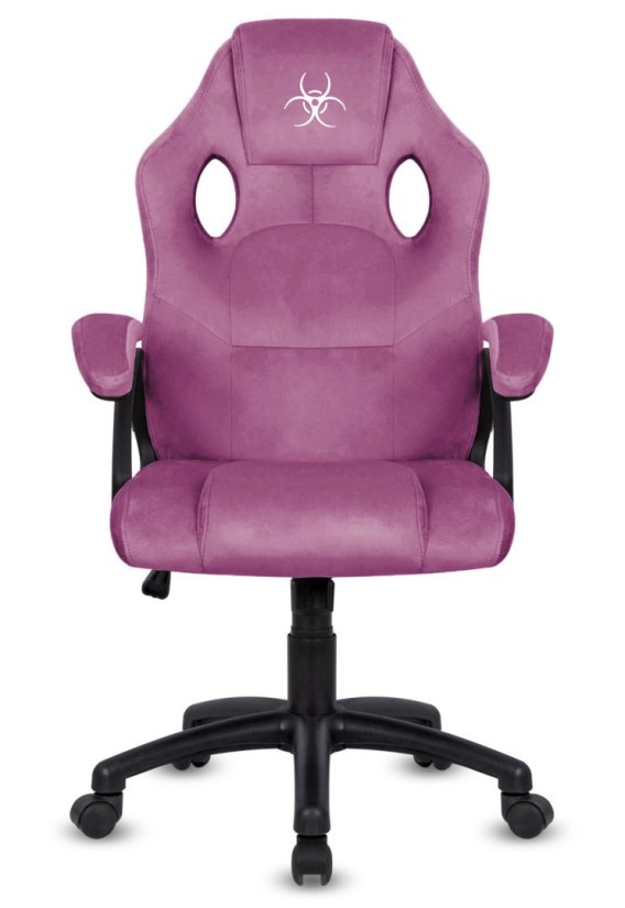 Fotel obrotowy do biurka, biura, dla gracza model CARRERA rozmiar M, tapicerowany fioletową tkaniną- alcanatara, marki Lugano. Ergonomicznie wyprofilowane oparcie.
