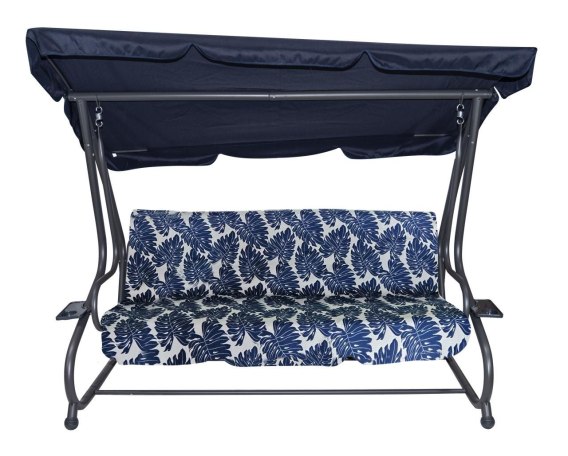 Huśtawka Ogrodowa Siedzisko Textylina 2x1 Wzór Liście Granatowa