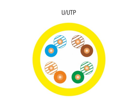 Przewód nieekranowany U/UTP (Unshielded/Unshielded Twisted Pair, oznaczenie zgodne z normą ISO/IEC 11801).
