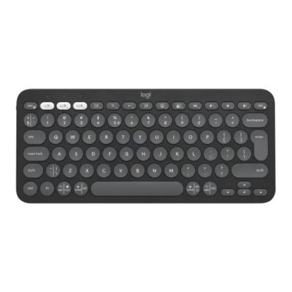 Informacje dodatkowe: Smukła, lekka, minimalistyczna konstrukcja wykonana z plastiku, pochodzącego z recyklingu, Możliwość parowania wielu urządzeń (do 3 urządzeń), Programowalne klawisze skrótów Fn z Logi Options+, Wygodne i ciche pisanie jak na laptopie dzięki klawiszom o niskim profilu, Klawisze specjalne klawiatury:, - wyświetlanie pulpitu, - wyszukiwanie, - powrót, - dyktowanie głosowe, - menu emoji, - przechwytywanie ekranu, Obsługa typu połączeń: kompatybilna z odbiornikiem, USB Logi Bolt (brak w zestawie), Akumulaor: 2x AAA (bateria alkaliczna); przycisk wł./wył. zasilania