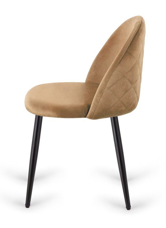 Nowoczesne, solidne i wygodne krzesło z oparciem, tapicerowane tkaniną w kolorze brązowym.