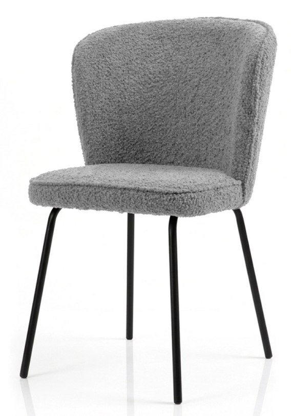 Nowoczesne, solidne i wygodne krzesło z oparciem, tapicerowane szarą tkaniną typu boucle.