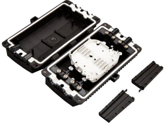 Mufa światłowodowa - to kompletny zestaw osprzętu do trwałego połączenia metodą spawania włókien dwóch (lub większej liczby) odcinków instalacyjnych kabli światłowodowych. Charakteryzuje je wysoka jakość uszczelnienia, bardzo wydajny i prosty system organizacji włókien, możliwość rozbudowy o kolejne kasety - całkowita pojemność mufy to 2 kaset po 12 uchwytów na spawy - 24 spawy.