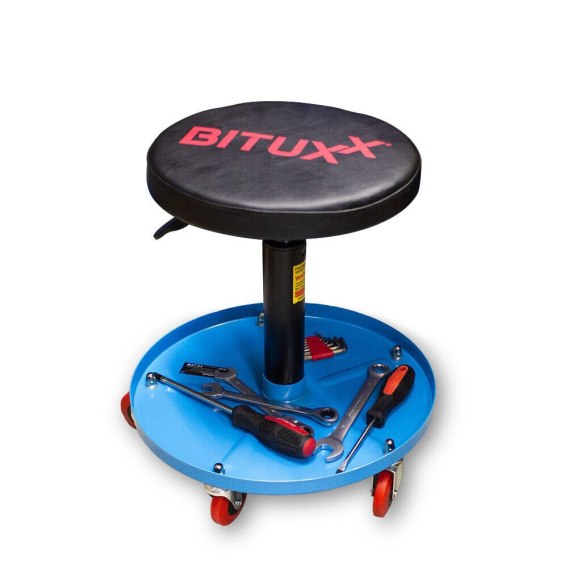 Jeżeli cenisz sobie wygodę i komfort w pracy, to znalazłeś coś dla siebie. Taboret warsztatowy z pneumatyczną regulacją wysokości w zakresie 400-500 mm. Siedzisko z eko skóry.W podstawie pojemnik na narzędzia i akcesoria niezbędne w trakcie pracy. Krzesło warsztatowe przydatne jest we wszelkiego rodzaju warsztatach, serwisach i garażach. Obrotowe siedzisko pozwala przyjąć użytkownikowi wygodną pozycję podczas pracy, pięć rolek obrotowych zwiększa mobilność podczas pracy. Solidna konstrukcja pozwala na obciążenie do 135kg, charakteryzuje się atrakcyjnym stosunkiem ceny do jakości.