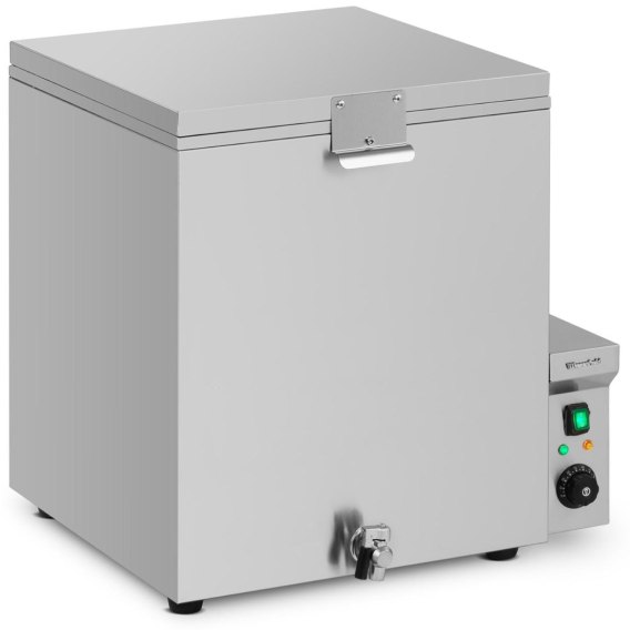 Oparzalnik do drobiu marki Wiesenfield idealnie sprawdza się w obróbce kurczaków przed umieszczeniem ich w skubarce. Otwarcie porów skóry pod wpływem wysokiej temperatury zapewnia później szybkie i wydajne usuwanie pierza. Sprzęt nadaje się również do kaczek, gęsi, bażantów oraz indyków. Maszyna jest w stanie wyparzać 7-8 kurczaków jednocześnie. Wewnątrz oparzalnika znajduje się wyjmowanystalowy kosz o wymiarach 430x430x505 mm. Sprzęt mapojemność 120 l. Obudowa wykonana została zestali nierdzewnej. Zachowanie czystości ułatwia kurek spustowy. Prosta obsługa dzięki pokrętłu do ustawiania temperatury i oddzielnemu przyciskowi do włączania/wyłączania.Czuły termostat odpowiada za sterowanie grzałką.Zaleca się oparzać: kurczaki w temp. 60-65°C przez 70-90 s, kaczki w temp. 63-66°C przez 160-180 s, gęsi w temp. 70-72°C przez 120-130 s, bażanty w temp. 63-67°C przez 70-90 s, indyki w temp. 51-54°C przez 80-95 s.