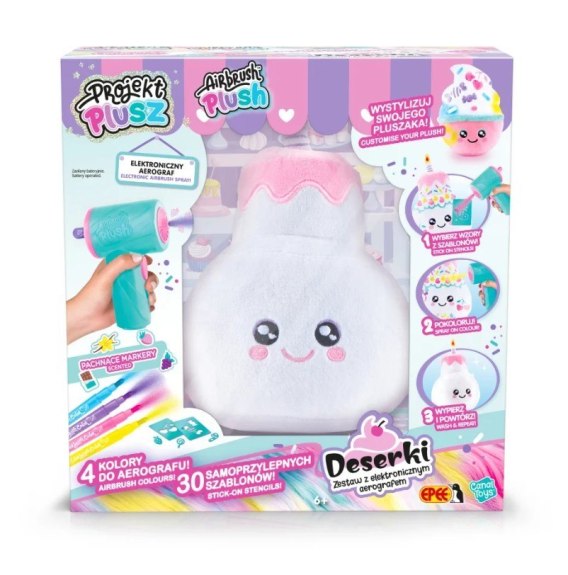 Projekt Plusz to jedyna w swoim rodzaju linia pluszaków, które możesz dekorować bez końca! Dzięki dołączonemu aerografowi nadasz swoim Deserkom unikalny wygląd, a gdy najdzie Cię ochota na zmiany - możesz je po prostu wyprać i zacząć całą zabawę od nowa!