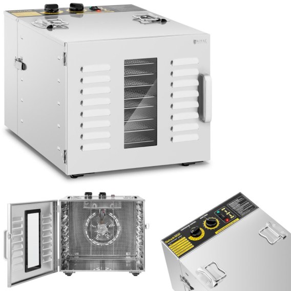 Suszarka do żywności marki Royal Catering doskonale sprawdzi się zarówno do użytku w domowej kuchni jak i do użytku profesjonalnego w gastronomii, gospodarstwach agroturystycznych do suszenia grzybów, owoców, warzyw, ziół, mięsa czy ryb.