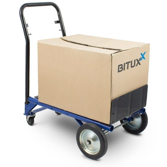 Wymiary wózka ręcznego: 36 x 45 x 117 / 105 / 93 cm Wymiary platformowego wózka: 80 x 45 x 77 cm Kolor: Błyszczący niebieski / czarny Materiał ramy: Stal Materiał kół: Guma Średnica kół: 19 cm / 7,5 cm Waga: 8,4 kg Udźwig: 80 kg