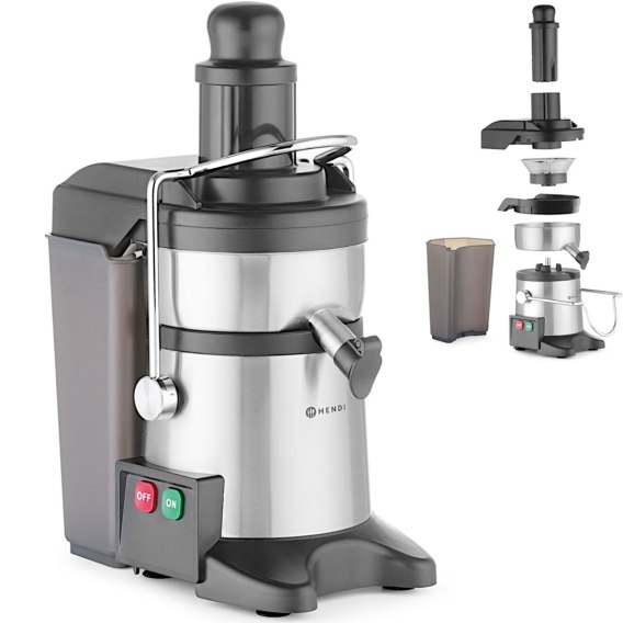 Kod produktu: 1030960 Sokowirówka Compact HENDI została wyposażona w silnik o dużej prędkości, co zapewnia szybkie i efektywne wyciskanie soku. Solidna obudowa ze stali nierdzewnej gwarantuje długą żywotność urządzenia, a duży pojemnik na miąższ 4,4 l zapewnia długą, nieprzerwaną pracę. Sokowirówka została zaprojektowana z myślą o pracy w intensywnych warunkach - jej wydajność wynosi około 100 kg na godzinę. Cechy produktu: