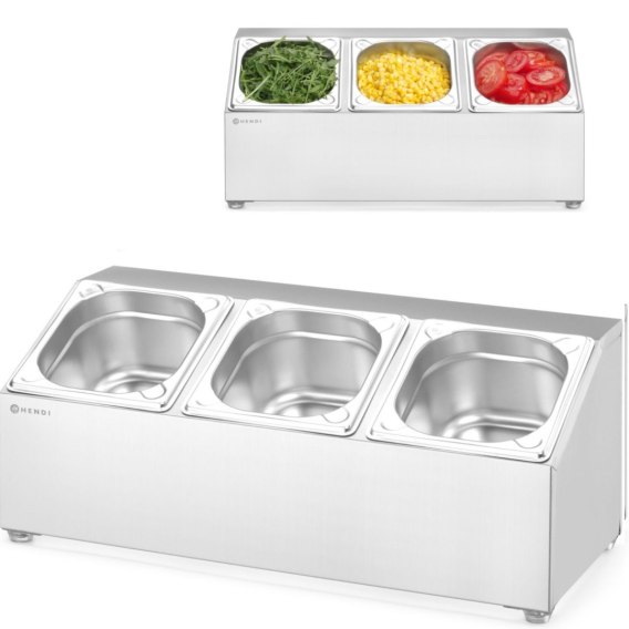 Stojak ekspozytor stalowy na pojemniki gastronomiczne 3x GN 1/6