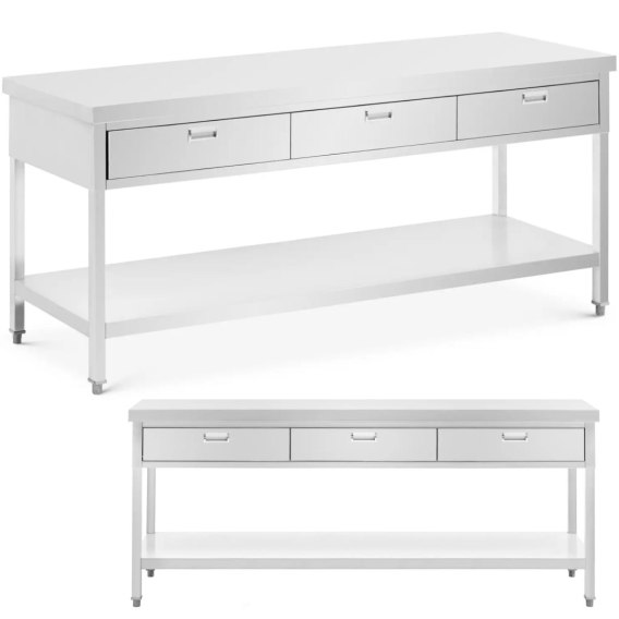 - Stół roboczy ze stali nierdzewnej z szufladami