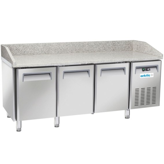 • - Stół chłodniczy do pizzy z granitowym blatem rantem 3-drzwiowy