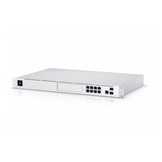 UniFi Dream Machine Pro (UDM-Pro) to uniwersalne urządzenie sieciowe dla przedsiębiorstw. UDM-Pro integruje wszystkie obecne i nadchodzące kontrolery UniFi z bramą bezpieczeństwa, 10G SFP + WAN, 8-portowym przełącznikiem Gb/s i gotową obsługą 3,5-calowych dysków twardych.