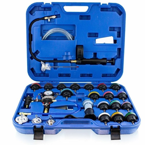 Profesjonalny miernik szczelności układu chłodnicy oraz nagrzewnic dla samochód osobowych, dostawczych i ciężarowych. Termometr w zestawie pozwala na sprawdzenie prawidłowego działania termostatu. Urządzenie do dokonania szybkiego napełnienia chłodziwa poprzez wywierane podciśnienie, po wcześniejszym opróżnieniu chłodnicy. Idealne narzędzie niezbędne w każdym warsztacie do szybkiego i czystego serwisu układu chłodzenia.