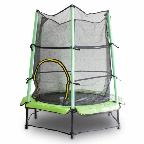 Trampolina dla dzieci Zielona do skakania mocny batut z osłona i siatką