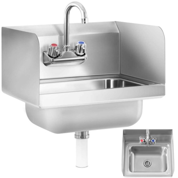 Profesjonalna umywalka do rąk została specjalnie zaprojektowana do zastosowania w punktach gastronomicznych, gabinetach, sklepach i wszędzie tam gdzie niezbędna jest wysoka higiena oraz łatwość zachowania czystości. Zlew posiada wysokie ścianki zabezpieczające przed rozpryskami wody. Wysoka jakość wykonania z polerowanej stali nierdzewnej ułatwia czyszczenie i zabezpiecza umywalkę przed uszkodzeniami. W zestawie jest wysokiej jakości, ruchomy kran ze wszystkimi niezbędnymi elementami. Umywalka jest przystosowana do zamontowania na ścianie.