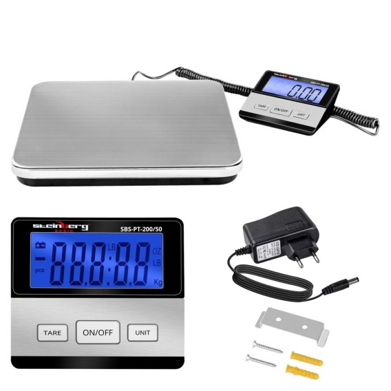 Waga platformowa paczkowa marki Steinberg Systems SBS-PT-200/50 wykonana została z wysokiej jakości materiałów, dzięki czemu nadaje się do ważenia bardzo dużych paczek do 200kg. Wyposażona jest w osobny terminal i platformę ze stali nierdzewnej (INOX).