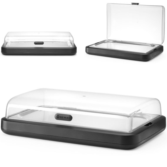 Witrynka chłodząca UNIQ HENDI zaprojektowana przez Roberta Bronwassera łączy design z funkcjonalnością zapewniając elegancką prezentację zimnych potraw. Solidna obudowa wykonana jest z polipropylenu, z przezroczystą pokrywą z ABS i tacą ze stali nierdzewnej gwarantującą trwałość. Zestaw zawiera tacę GN 1/1 i wkład chłodzący zapewniający optymalne utrzymanie temperatury. Cechy produktu: