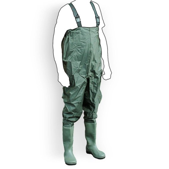 Lekkie i nie krępujące ruchów spodniobuty. Wędkarskie wodery wodochronne z wgrzanymi na stałe wysokiej jakości kaloszami posiadają regulowane szelki z elastycznej i szerokiej gumy. Wyposażone są w solidne buty z twardą, antypoślizgową podeszwą, przeznaczone do brodzenia po trudnym, kamienistym dnie. Znakomicie nadają się do czynnego wędkarstwa. Spodniobuty sprawdzone w różnych warunkach, wygodne i wytrzymałe, pozwalające przebywać cały dzień w wodzie bez obawy przecieknięcia.