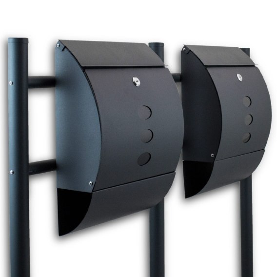 Podwójna skrzynka pocztowa, to dwie skrzynki na jednym wspólnym stojaku. Rozwiązanie, które sprawdzi się w domach bliźniaczych, w domach dwurodzinnych, w domach sąsiadujących ze sobą, lub po prostu do firm.