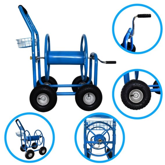 Wózek ogrodowy Bituxx na wąż do wody zwijany na szpulę korbą z koszykiem 4 pompowane koła