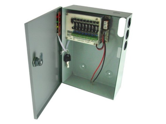 Zasilacz impulsowy w metalowej obudowie zamykanej na kluczyk.