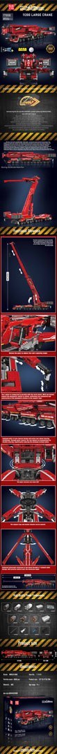 Wysokiej jakości klocki konstrukcyjne Mould King dla dzieci od czternastego roku życia. Zestaw składa się z 8506 elementów, z których zbudować można czerwony dźwig. Sterować go można za pomocą pilota dołączonego do zestawu lub przy pomocy aplikacji w telefonie. Aplikację można pobrać skanując kod QR znajdujący się na opakowaniu. Dzięki aplikacji można nie tylko poruszać pojazdem ,ale również zaprojektować jego ruchy. Zestaw wyposażono we wszystkie niezbędne silniki i boksy na baterie.